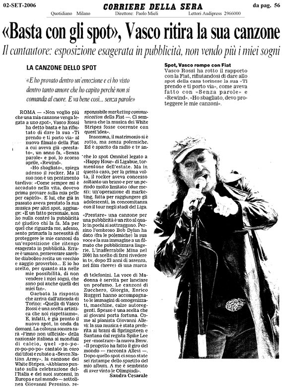 'Basta con gli spot', Vasco ritira la sua canzone