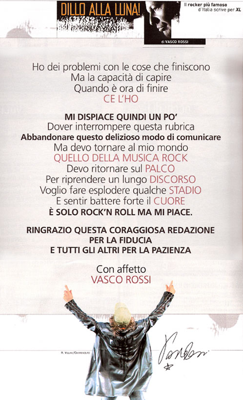 Ecco a voi l'editoriale del Blasco per XL. E' l'ultimo e il messaggio è