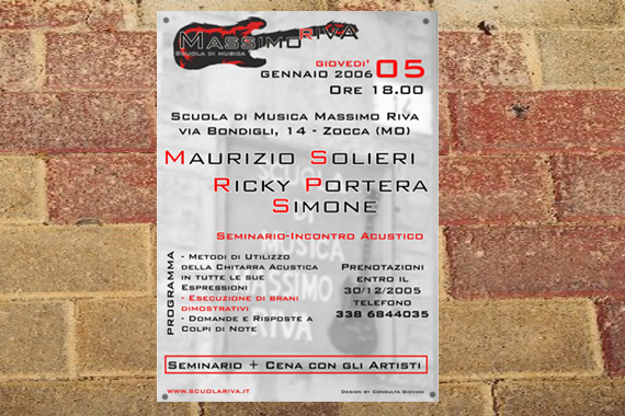 Giovedì 05 Gennaio a Zocca, alle ore 18.00 presso la Scuola di Musica Massimo Riva, si terrà la seconda edizione del Seminario-incontro- Acustico insieme a Maurizio Solieri, Ricky Portera e Simone.