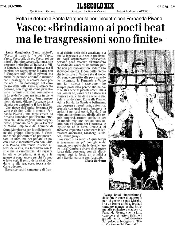 Vasco: 'Brindiamo ai poeti beat ma le trasgressioni sono finite'