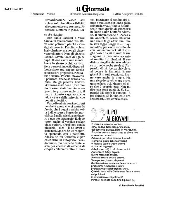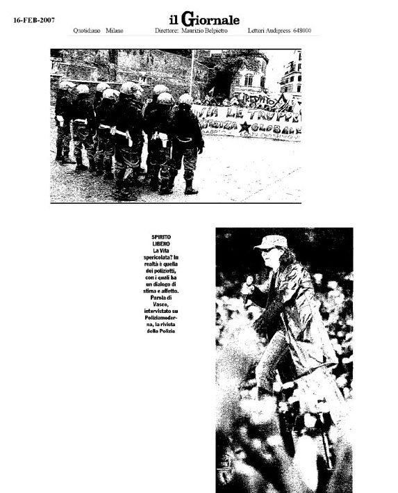 Vasco Rossi difende i poliziotti - Vasco come Pasolini: 'Io sto con la polizia'