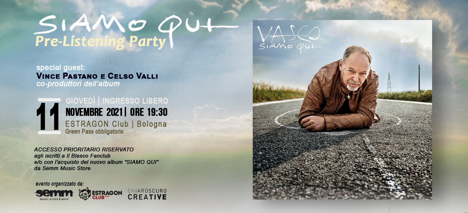 “SIAMO QUI”: e noi ci saremo, all'evento di giovedi 11/11/21, il pre-listening party, durante il quale potrete ascoltare ed acquistare in anteprima il nuovo lavoro del Blasco!