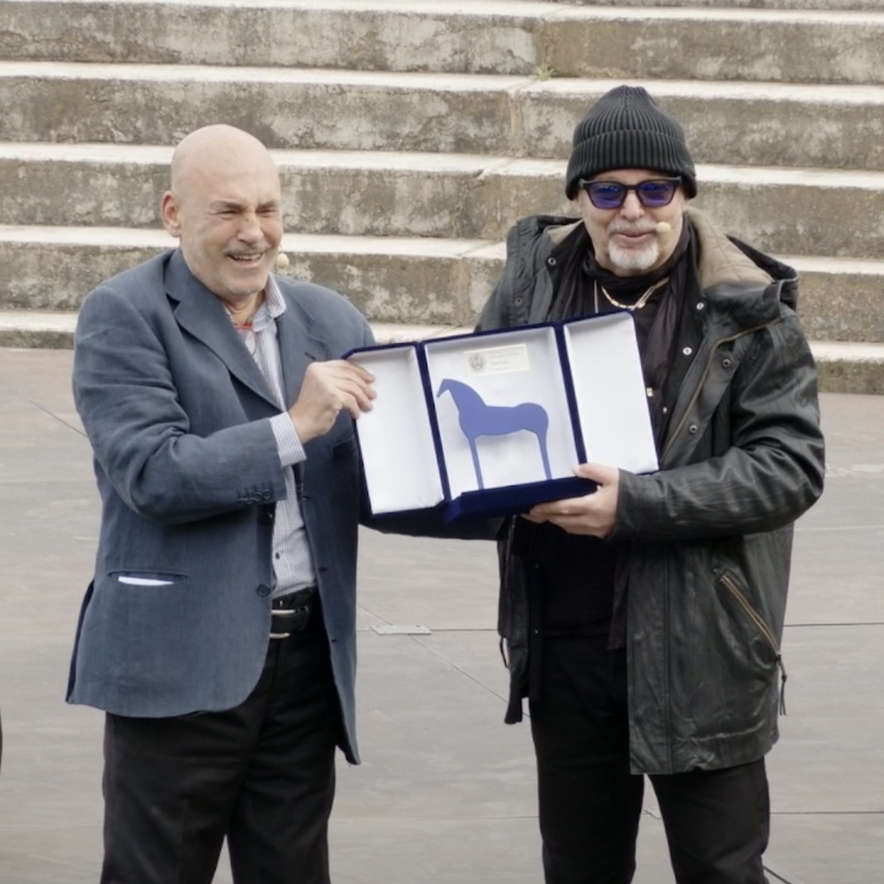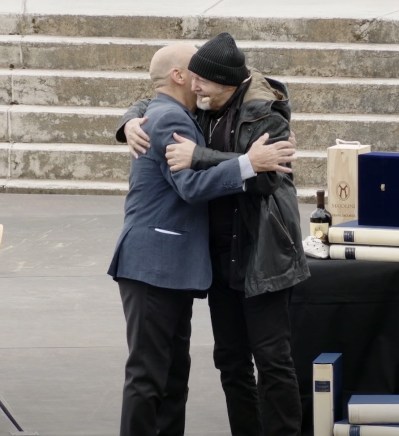 Nel premio conferito questo pomeriggio da Giordano Bruno Guerri, Presidente della Fondazione Il Vittoriale degli Italiani, a Vasco Rossi c’è tutto quell’inesauribile fascino del viaggio attraverso il tempo che resta intatto e che, anzi, ci viene donato rinnovato in tutta la sua bellezza attraverso colui che è stato in grado di coglierla e di farla propria; c’è il coraggio di osare restando fedeli a sé stessi; c’è il desiderio di far mantenere intatta la passione, di incantare generazioni e generazioni; c’è la necessità di calarsi e di specchiarsi nelle proprie ombre per poi tornare alla luce attraverso la bussola dell’audacia senza mai perdere la propria strada.