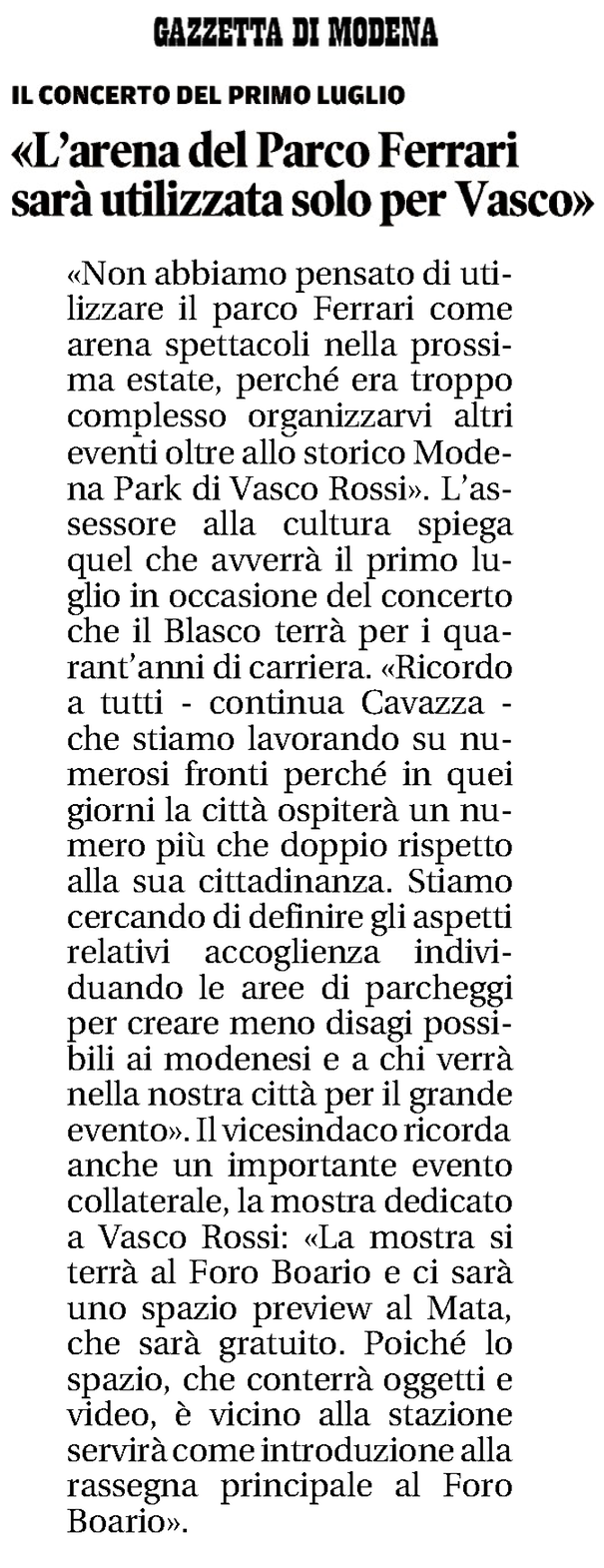 Vasco la mostra ufficiale” fa tappa a Modena per celebrare i 40 anni di palco dell’artista; si inaugura il 13 maggio per concludersi il 2 luglio subito dopo lo straordinario concerto MODENA PARK.