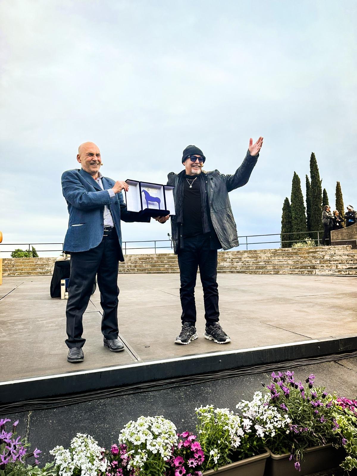 Ha ricevuto ieri, 17 aprile, il XV Premio del Vittoriale, assegnato dalla Fondazione a personalità di spicco nei più disparati ambiti del sapere ,dal cinema alla scienza, dalla musica alla medicina, che abbiano lasciato, e continuino a lasciare, una traccia importante del loro operato. Il presidente Giordano Bruno Guerri e il cda della Fondazione hanno deciso di assegnarlo "al komandante che per il suo viaggio nella vita e nella musica ha inventato la definizione di 'supervissuto', ha costruito un genere, quello del rock italiano, adattando metrica, linguaggio e temi e rompendo ogni schema, ha sempre avuto il coraggio di osare e sfidare il tempo restando fedele a se stesso. Un ribelle gentile capace di mantenere intatta la passione, di incantare tutte le generazioni".