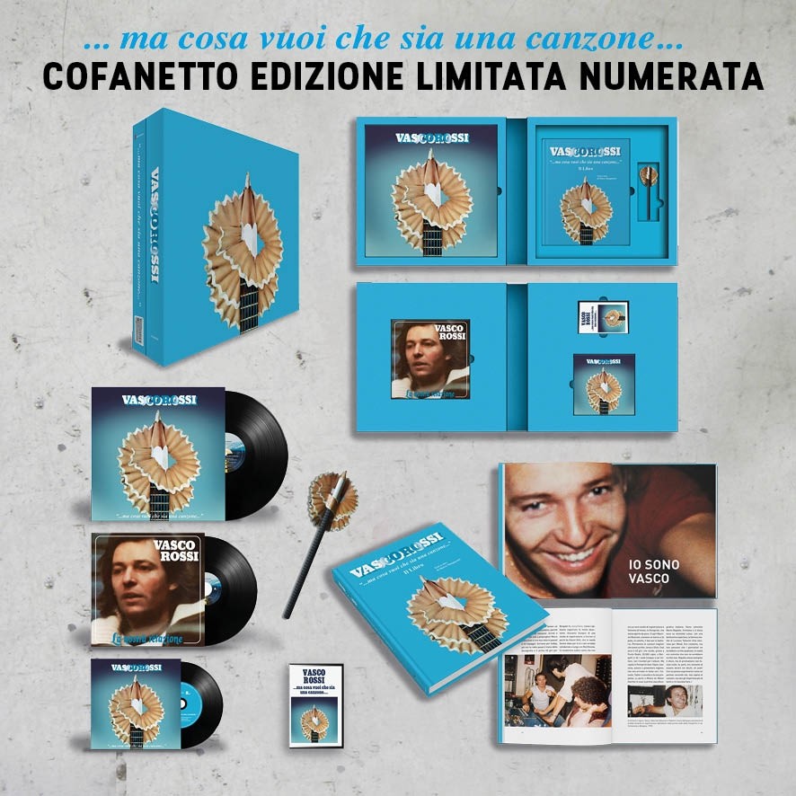 - COFANETTO DELUXE in edizione limitata numerata : include l’album originale a 33 giri 180gr; il 45 giri “La nostra relazione/ …e poi mi parli di una vita insieme”; il CD in versione vinyl replica; la musicassetta; il libro di 112 pagine, scritto dal giornalista e critico musicale Marco Mangiarotti, con intervista a Vasco, molte foto di repertorio e contenuti inediti ed esclusivi; una matita personalizzata