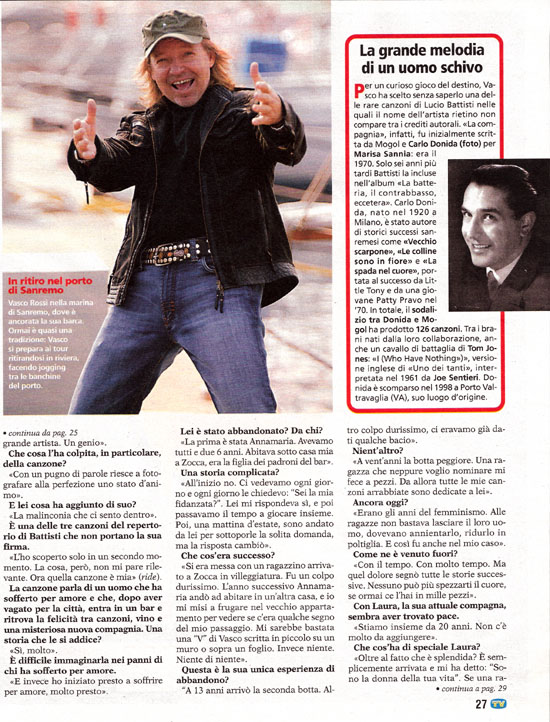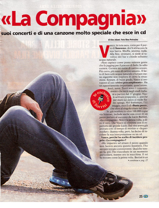 Vasco: ho scelto La compagnia perchè è una canzone...'mia'